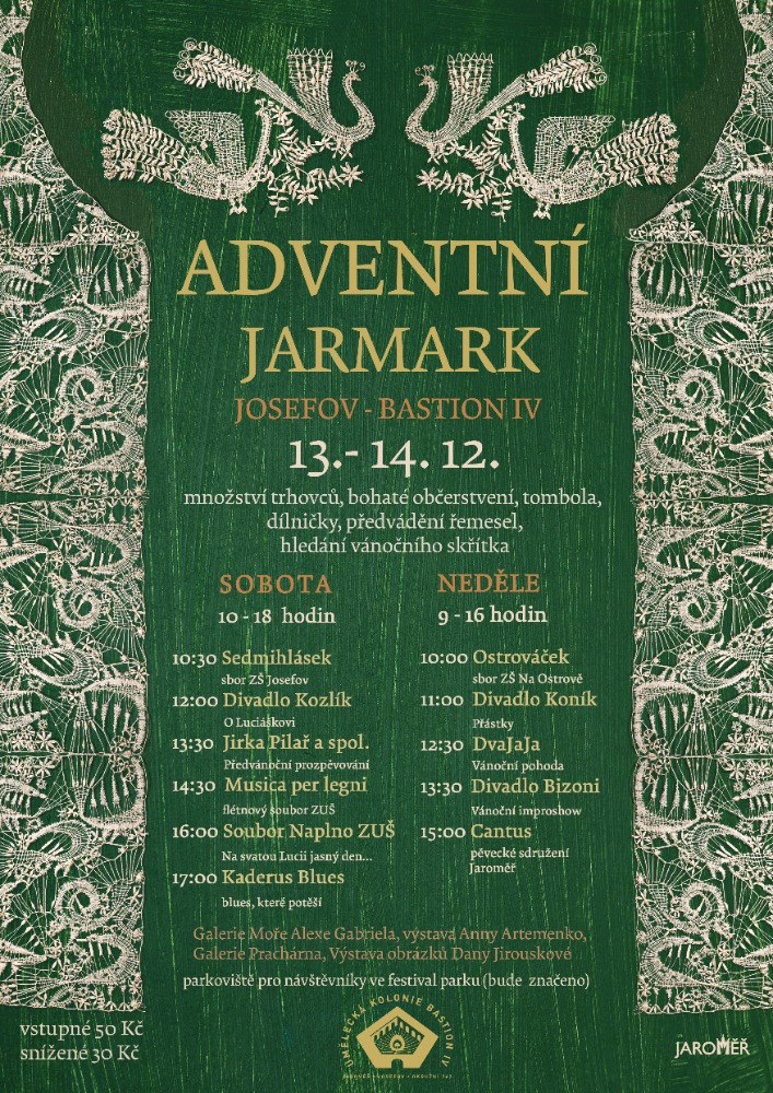 Tradiční Adventní jarmark v jedinečném historicko - uměleckém prostředí Bastionu IV v pevnostním městě Josefov se koná ve dnech 13. a 14. prosince 2025.